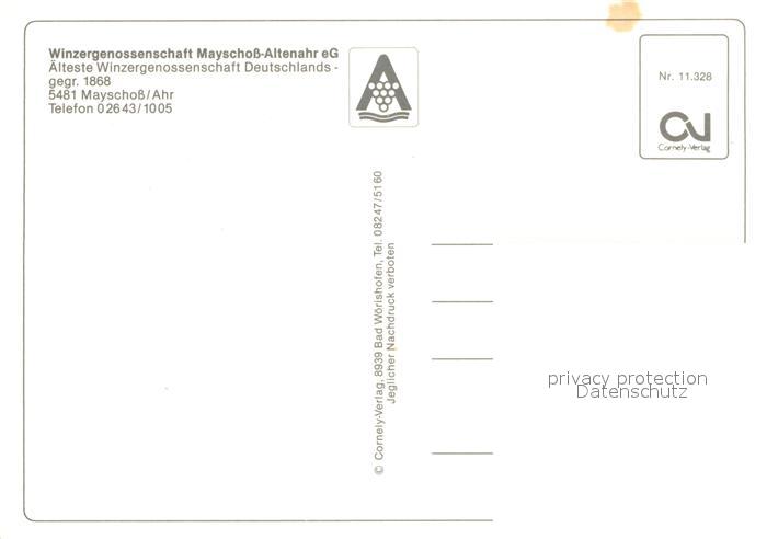 72972526 Mayschoss Rotweinzentrum Winzerverein Weinkeller postalisch nicht gelaufen Erhaltung siehe scans [PaolaD17] KatCode: 11110007131049