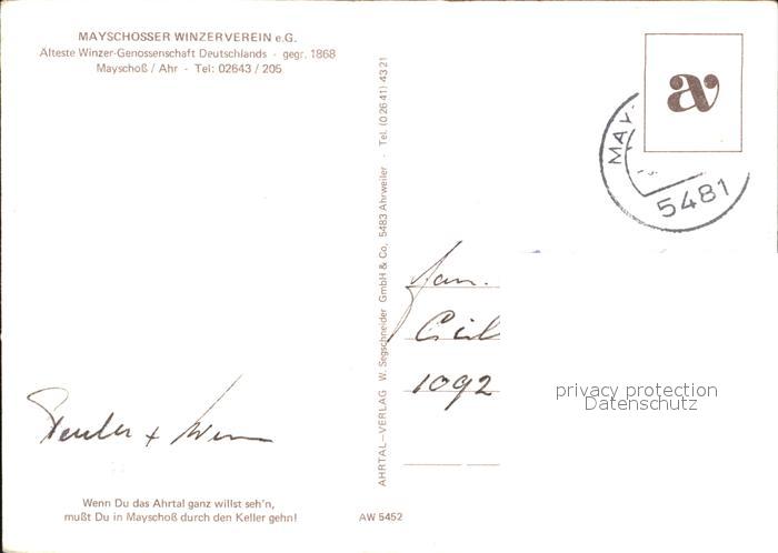 72541031 Mayschoss Weinkeller postalisch nicht gelaufen Erhaltung siehe scans [AndreD76 kt119box] KatCode: 11110007131049