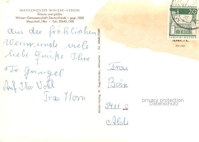 73840991 alte Postkarte Mayschoss Winzer Genossenschaft Mayschoss Gastraum postalisch gelaufen Erhaltung siehe scans [WerneD78] KatCode: 11110007131049