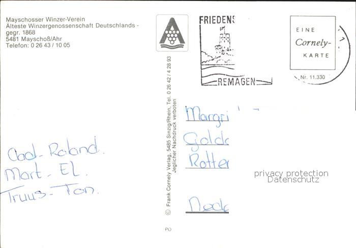 alte Postkarte Mayschoss Winzer-Verein postalisch gelaufen Erhaltung siehe scans