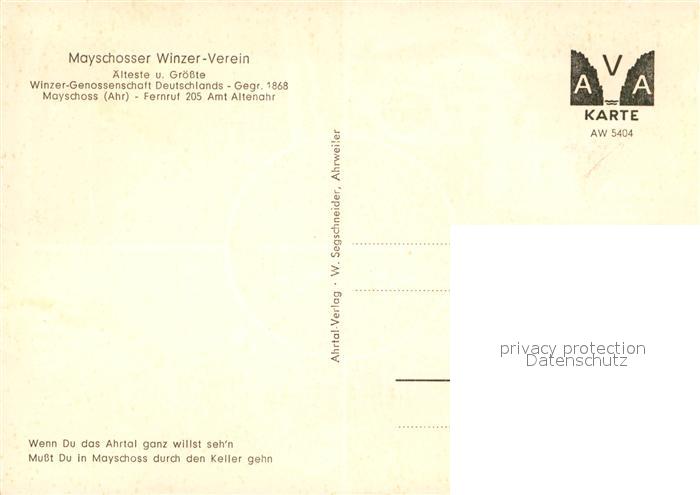 72931073 Mayschoss Winzer Verein Weinkeller Kellerbar postalisch nicht gelaufen Erhaltung siehe scans [WerneD78] KatCode: 11110007131049