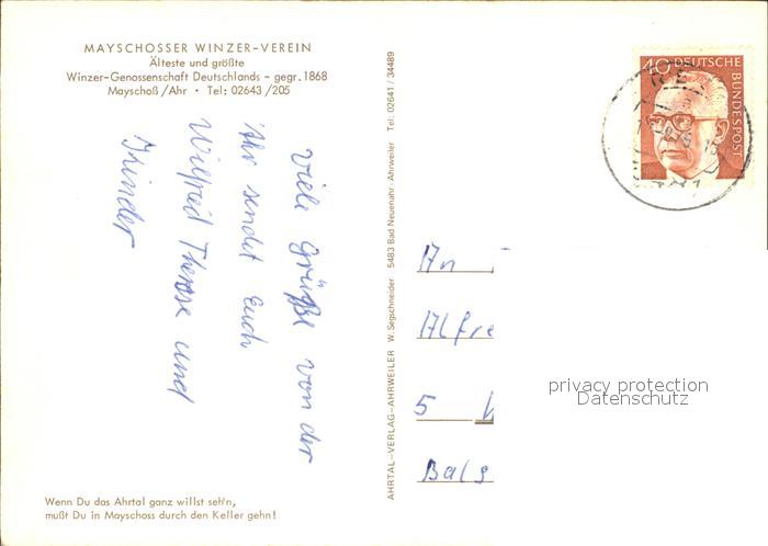 72496066 alte Postkarte Mayschoss Winzergenossenschaft Weinstube postalisch gelaufen Erhaltung siehe scans KatCode: 11110007131049