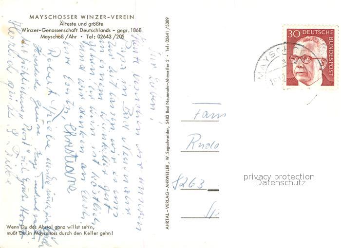 73013540 alte Postkarte Mayschoss Winzerverein postalisch gelaufen Erhaltung siehe scans [NatalD47] KatCode: 11110007131049