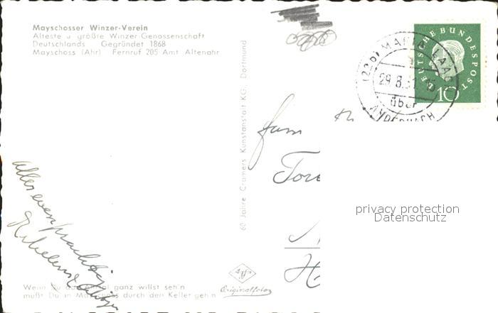 72024442 alte Postkarte Mayschoss Winzerverein Urkunde postalisch gelaufen Erhaltung siehe scans KatCode: 11110007131049
