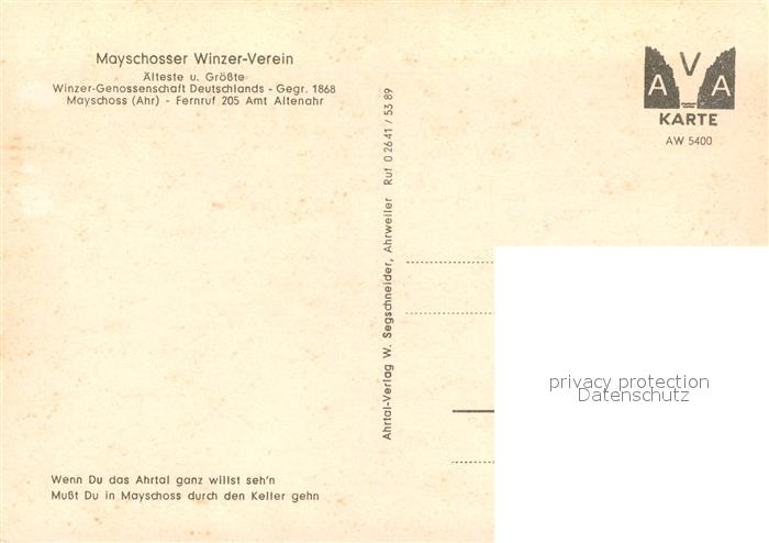 73172850 Mayschoss Winzerverein postalisch nicht gelaufen Erhaltung siehe scans [LiesaD40] KatCode: 11110007131049