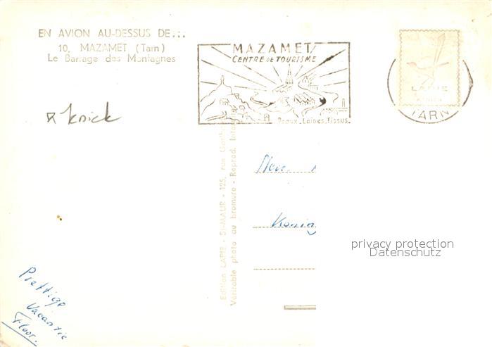 12939215 carte postale Mazamet Barrage des Montagnes postalisch gelaufen Erhaltung siehe scans [PaolaD17] KatCode: 11170081281163