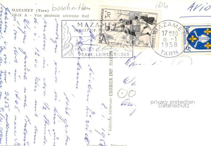 13219725 carte postale Mazamet Vue Aerienne postalisch gelaufen Erhaltung siehe scans [PaolaD17] KatCode: 11170081281163