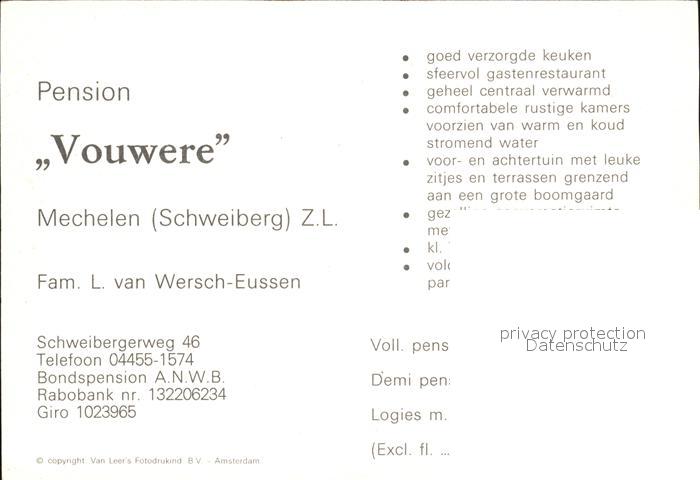 72420461 Mechelen Malines Pension Vouwere postalisch nicht gelaufen Werbekarte (keine Postkarte) Erhaltung siehe scans KatCode: 11070012000408