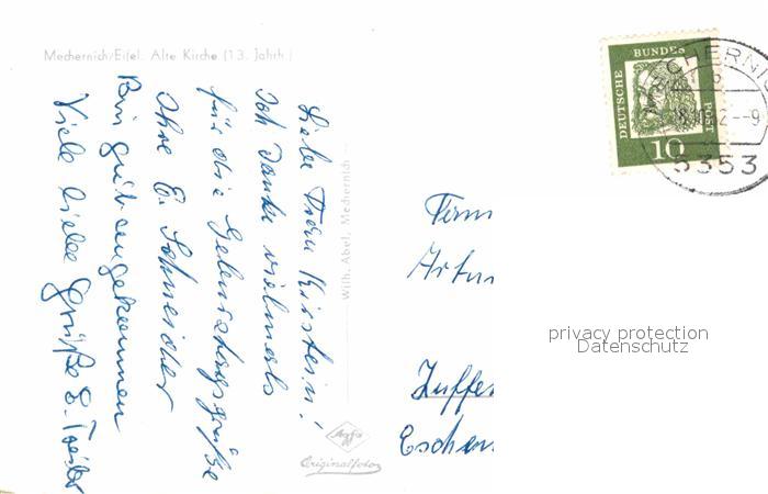 72788115 alte Postkarte Mechernich Alte Kirche postalisch gelaufen Erhaltung siehe scans [AndreD76] KatCode: 11110005366028