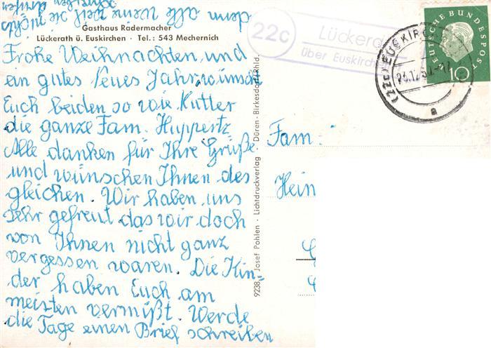 73886120 alte Postkarte Mechernich Gasthaus Radermacher Blick zur Kirche Fachwerkhaeuser Landschaftspanorama postalisch gelaufen Erhaltung siehe scans [FriedD77] KatCode: 11110005366028