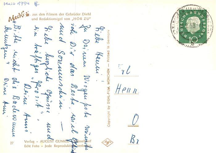 74037547 alte Postkarte Mecki Nr. 27 Gebrueder Diehl Hoer Zu Igel Blumen postalisch gelaufen Erhaltung siehe scans [IrynaD87] KatCode: 22560000000300