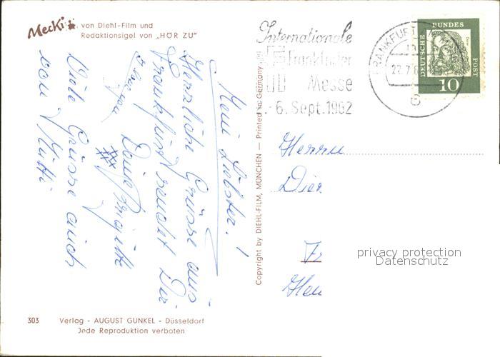 alte Postkarte Mecki Nr. 303 Vergiss mein nicht Brief Vogel postalisch gelaufen Erhaltung siehe scans