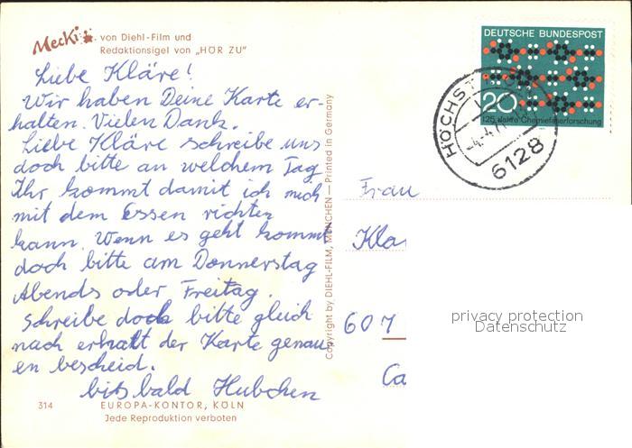 alte Postkarte Mecki Nr. 314 Herd Apfel Orange postalisch gelaufen Erhaltung siehe scans