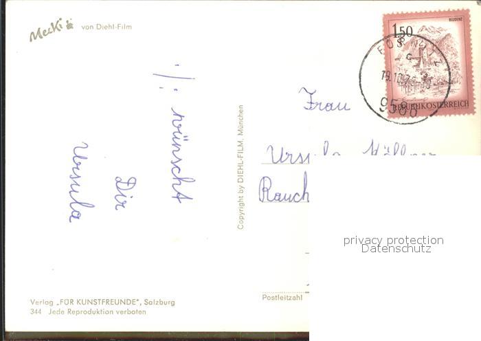 alte Postkarte Mecki Nr. 344 Glueckwunsch Namenstag Blumen postalisch gelaufen Erhaltung siehe scans