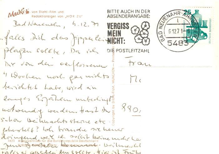 alte Postkarte Mecki Nr. 4420 Diehl-Film Hoer Zu Blumenladen postalisch gelaufen Erhaltung siehe scans [IrynaD87]
