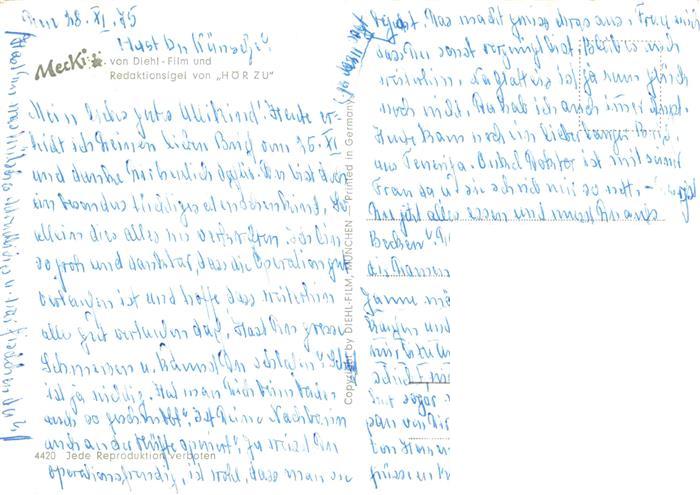 74007215 alte Postkarte Mecki Nr. 4420 Diehl Hoer Zu Herzliche Wuensche baldige Beserung postalisch gelaufen Erhaltung siehe scans [IrynaD87] KatCode: 22560000000300