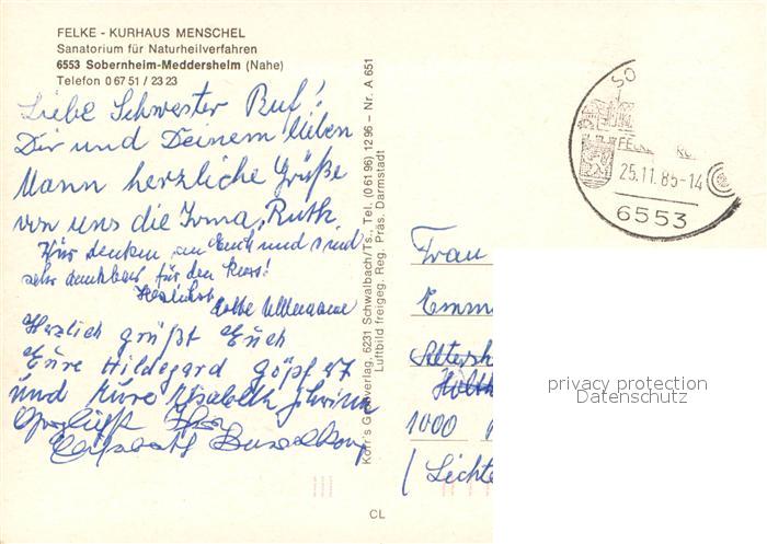 73666520 alte Postkarte Meddersheim Sobernheim Felke Kurhaus Menschel Sanatorium Fliegeraufnahme postalisch gelaufen Erhaltung siehe scans [WerneD78] KatCode: 11110007133064