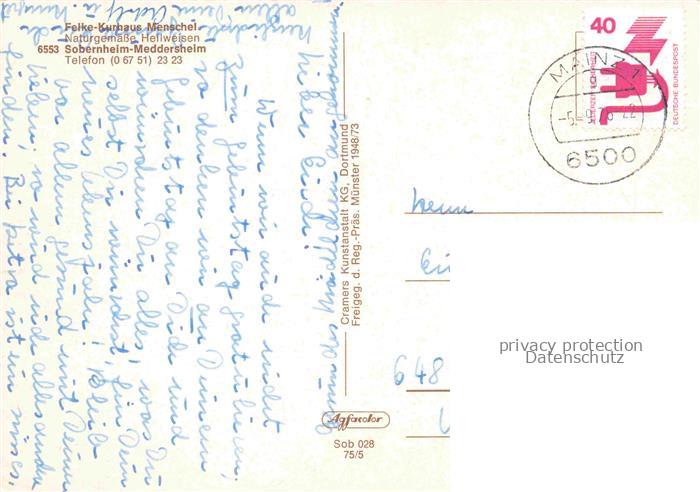 74043670 alte Postkarte Meddersheim Sobernheim Felke-Kurhaus Menschel postalisch gelaufen Fliegeraufnahme Erhaltung siehe scans [FriedD77] KatCode: 11110007133064