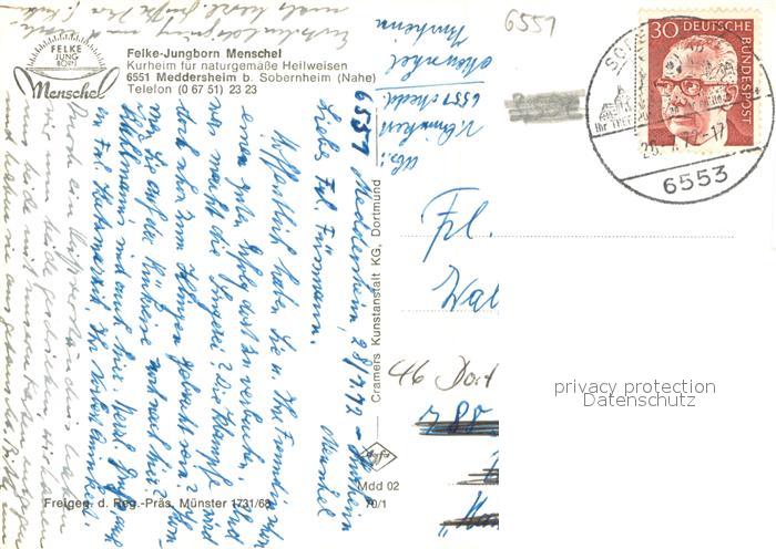 73706012 alte Postkarte Meddersheim Sobernheim Fliegeraufnahme Felke-Jungborn Menschel postalisch gelaufen Erhaltung siehe scans [LiesaD40] KatCode: 11110007133064