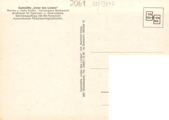 73893071 Meddewade Gaststaette Unter den Linden Bar Gastraeume postalisch nicht gelaufen Erhaltung siehe scans [WerneD78] KatCode: 11110001062046