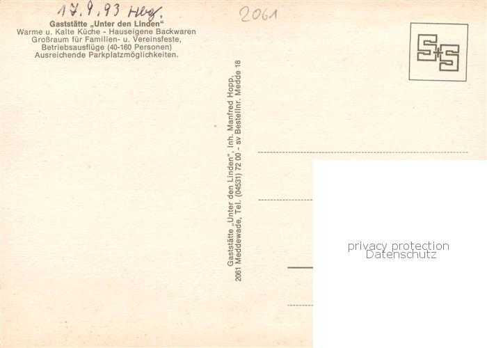73753389 Meddewade Gaststaette Unter den Linden Bar Speisesaal postalisch nicht gelaufen Erhaltung siehe scans [WerneD78] KatCode: 11110001062046