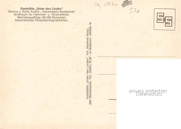 73569616 Meddewade Gaststaette Unter den Linden postalisch nicht gelaufen Erhaltung siehe scans [FriedD77] KatCode: 11110001062046