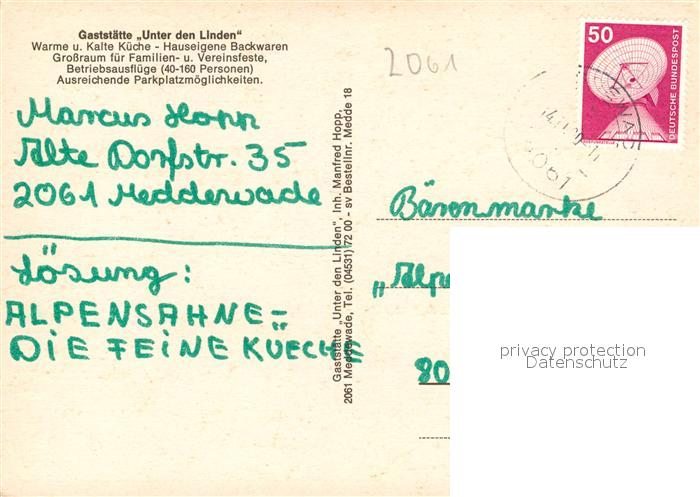 73569723 alte Postkarte Meddewade Gastst?tte Unter den Linden postalisch gelaufen Erhaltung siehe scans [PaolaD17] KatCode: 11110001062046