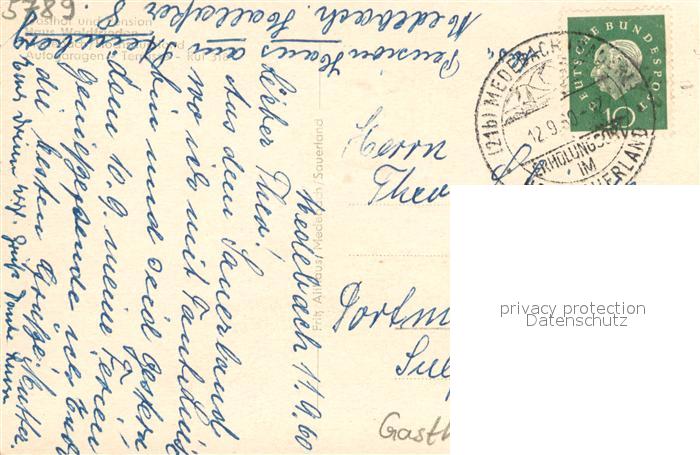 73705806 alte Postkarte Medebach Gasthof Pension Haus Waldfrieden postalisch gelaufen Erhaltung siehe scans [WerneD78] KatCode: 11110005958028