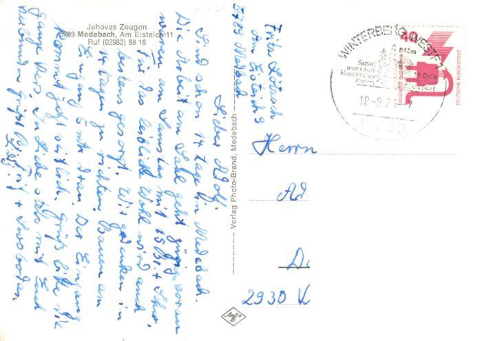 73892828 alte Postkarte Medebach Koenigreichsaal Tagungsraum postalisch gelaufen Erhaltung siehe scans [FriedD77] KatCode: 11110005958028