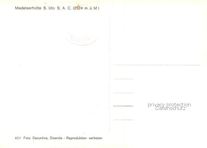 13806742 Medelserhuette 2524m GR postalisch nicht gelaufen Erhaltung siehe scans [LiesaD40] KatCode: 11470360680776