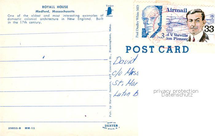 73059119 old postcard Medford Massachusetts Royal House postalisch gelaufen Erhaltung siehe scans [WerneD78] KatCode: 14140230000000