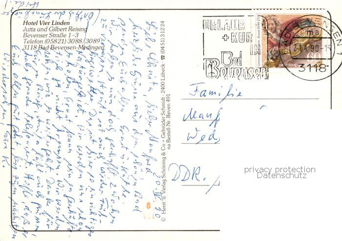 73842587 alte Postkarte Medingen Bad Bevensen Hotel Vier Linden Brunnen Schwimmbad postalisch gelaufen Erhaltung siehe scans [WerneD78] KatCode: 11110003360002