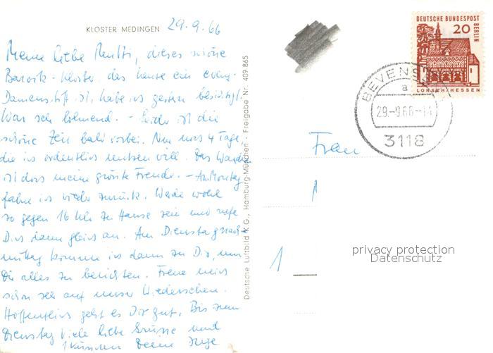 73049611 alte Postkarte Medingen Bad Bevensen Kloster Medingen Fliegeraufnahme postalisch gelaufen Erhaltung siehe scans [PaolaD17] KatCode: 11110003360002
