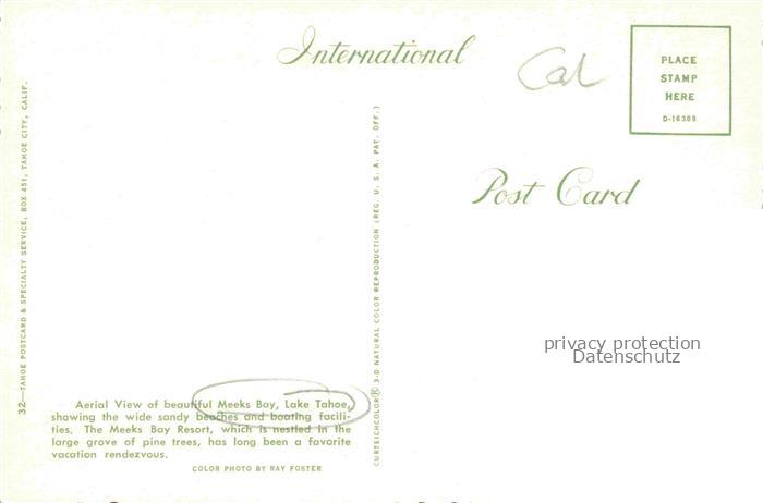 74092309 Meeks Bay Lake Tahoe California USA Aerial View postalisch nicht gelaufen Erhaltung siehe scans [IrynaD87] KatCode: 14140050000000