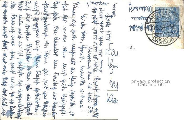71987287 alte Postkarte Meerane August Bebel Strasse Stadtkirche postalisch gelaufen Erhaltung siehe scans KatCode: 11110014173160