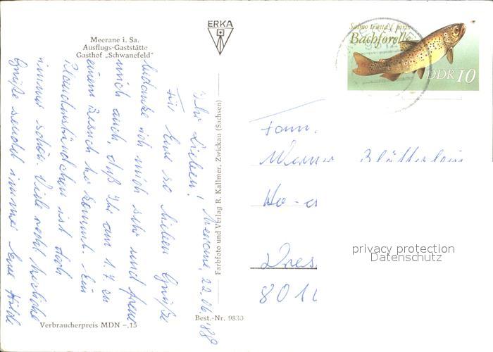 72370852 alte Postkarte Meerane Ausflugs-Gaststaette Gasthof Schwanefeld postalisch gelaufen Erhaltung siehe scans KatCode: 11110014173160