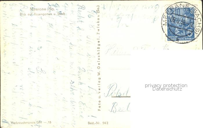 72272375 alte Postkarte Meerane Blick auf den Rosengarten und die Stadt postalisch gelaufen Erhaltung siehe scans KatCode: 11110014173160