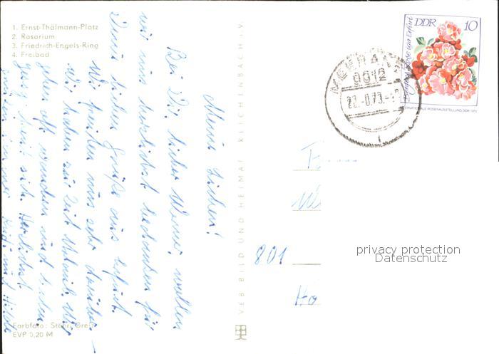72370849 alte Postkarte Meerane Ernst-Thaelmann-Platz Freibad Friedrich-Engels-Ring postalisch gelaufen Erhaltung siehe scans KatCode: 11110014173160