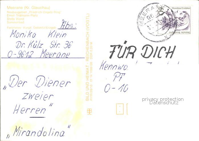 72120445 alte Postkarte Meerane Ernst Thaelmann Platz Steile Wand Schwimmbad postalisch gelaufen Erhaltung siehe scans KatCode: 11110014173160