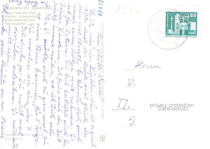 72947268 Meerane Ernst Thaelmann Str Gasthof Schwanefeld Franz Mehring Platz Neubaugebiet postalisch nicht gelaufen Erhaltung siehe scans [WerneD78] KatCode: 11110014173160
