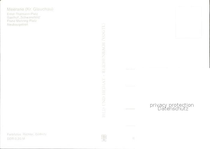 72548625 Meerane Gasthaus Schwanenfeld Ernst-Thaelmann-Platz und Franz-Mehring-Platz postalisch nicht gelaufen Erhaltung siehe scans [LiesaD40 kv019box] KatCode: 11110014173160