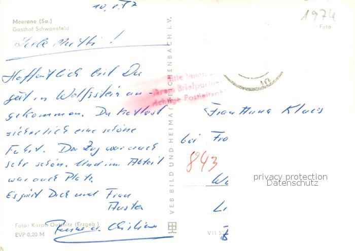 72972407 alte Postkarte Meerane Gasthof Schwanefeld postalisch gelaufen Erhaltung siehe scans [NatalD47] KatCode: 11110014173160