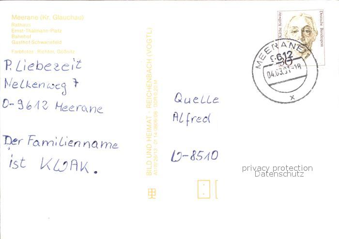 72369108 alte Postkarte Meerane Rathaus Ernst Thaelmann Platz Bahnhof postalisch gelaufen Erhaltung siehe scans KatCode: 11110014173160
