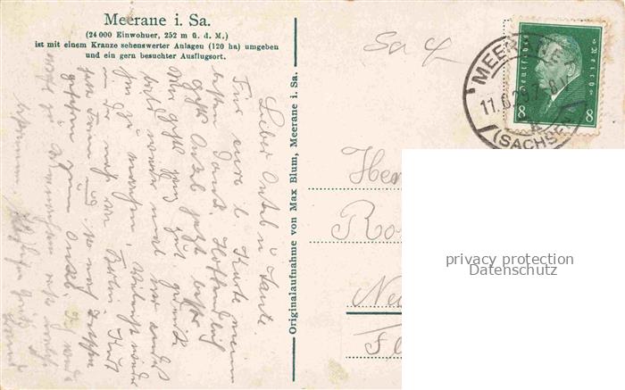 74022653 alte Postkarte Meerane Sachsen Wilhelm Wunderlich Park postalisch gelaufen Erhaltung siehe scans [WerneD78] KatCode: 11110014173160