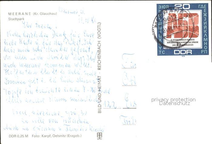 72137657 alte Postkarte Meerane Stadtpark postalisch gelaufen Erhaltung siehe scans KatCode: 11110014173160