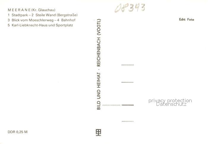 73566404 Meerane Stadtpark Steile Wand Bergstrasse Kirche Bahnhof Karl Liebknecht Haus Sportplatz postalisch nicht gelaufen Erhaltung siehe scans [FriedD77] KatCode: 11110014173160