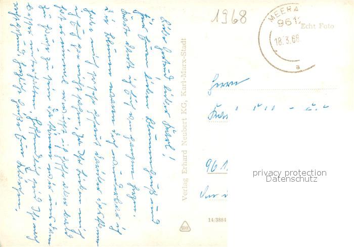 72967537 alte Postkarte Meerane Wilhelm Wunderlich Park Steile Wand Bergstrasse Kirche Bahnhof Karl Liebknecht Haus Sportplatz postalisch gelaufen Erhaltung siehe scans [FriedD77] KatCode: 11110014173160