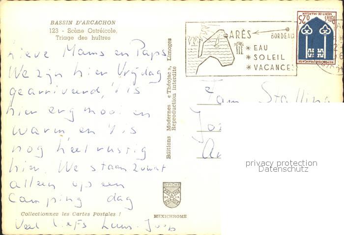 alte Postkarte Meerestiere Austern Triage des huitres Bassin d Arcachon postalisch gelaufen Erhaltung siehe scans