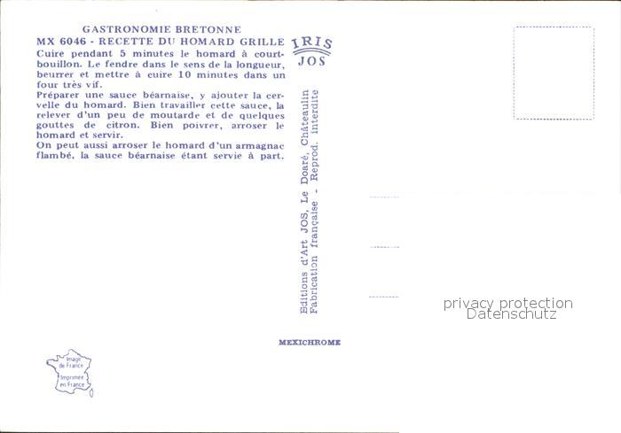 Meerestiere Recette Homard Grille postalisch nicht gelaufen Erhaltung siehe scans