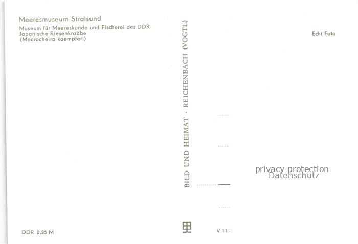 74063436 Meerestiere Sea Animals Animaux Marins Museum Stralsund Japanische Riesenkrabbe postalisch nicht gelaufen Erhaltung siehe scans [IrynaD87] KatCode: 22540000002500